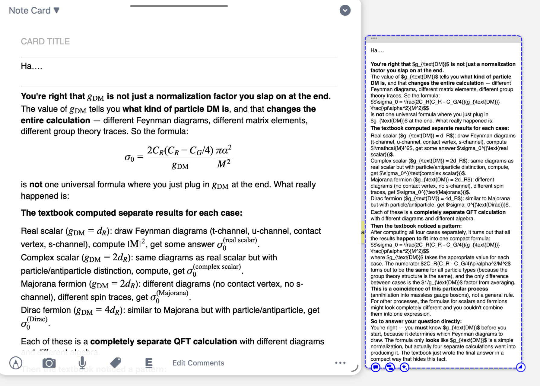 but at some point, it doesn’t work. i can see its rendering at card directly, but it doesn’t render when i just click the card on the mind map. I can only see my equations when i go into the card directly. It’s too uncomfortable. i don’t remember that i did something wrong, but it suddenly didn’t work like the below image.